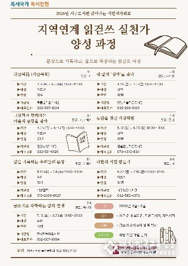 서구도서관 관계자는 “이번 지역기관 연계 사업을 통해 ‘독서국가, 독서인천’실현의 기반이 되어 시민의 독서활동을 생활화하고, 지역사회 중심의 지속 가능한 독서공동체 형성에 기여하길 기대한다”고 말했다.