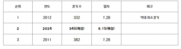 팬들의 뜨거운 성원에 힘입어 15일(토) 345경기를 치른 시점에 500만 관중 돌파가 유력한 가운데, 2024 시즌 반환점을 돌기 전 500만 관중을 돌파하게 된다. 10개 구단 체제 이후로는 가장 빠른 속도이며, 역대 500만 관중 돌파 시점을 봤을 때, 332경기만에 500만 관중을 돌파했던 2012시즌에 이어 역대 2번째로 빠른 추세다.