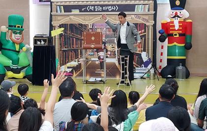 ‘동요 마술쇼’는 울주도서관에서 운영 중인 ‘북스타트’후속 사업의 하나로 어린이들에게 독서 흥미를 유발하고 도서관에 친근감을 느끼게 해주고자 마련했다.