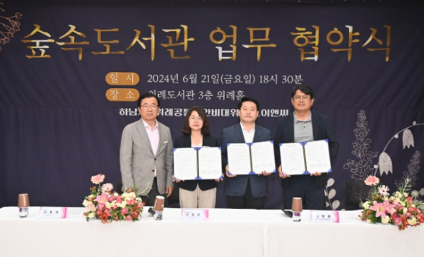 [대한민국교육신문] 하남시가 지난 21일 위례도서관 위례홀에서 위례공통현안비상대책위원회, DL이앤씨와 위례 숲속도서관 건립을 위한 3자간 업무협약을 체결했다고 24일 밝혔다.