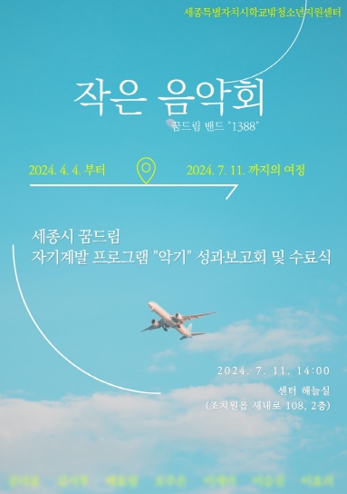 이번 자기계발 프로그램은 세종사회복지공동모금회 공모 선정 사업을 통해 진행됐으며, 학교 밖 청소년 욕구 조사를 통한 결과를 반영하여 “악기”, “코딩” 총 2개의 반이 운영됐다.
