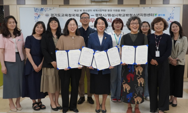[대한민국교육신문] 경기도교육청국제교육원이 12일 화성·평택시 학교밖청소년지원센터와 학교 밖 청소년 교육지원을 위한 업무협약을 체결했다.