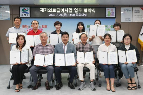 [대한민국교육신문] 고성군은 지난 26일 재가의료급여사업 추진을 위해 협력 의료기관 및 서비스 제공기관과 업무 협약을 체결했다.