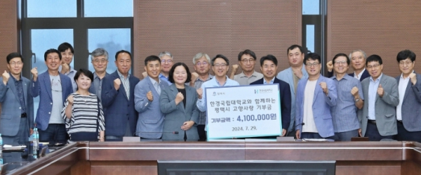 [대한민국교육신문] 평택시는 지난 29일 한경대학교 평택캠퍼스에서 한경대학교 이원희 총장 및 교수, 교직원 등 20여명이 평택시 발전을 위해 고향사랑기부금 410만원을 모금해 전달했다고 밝혔다.