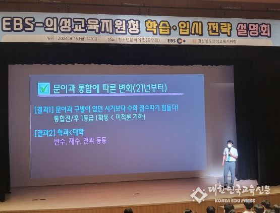 [대한민국교육신문] 경상북도의성교육지원청은 8월 16일 14시부터 청소년문화의 집 공연장에서 관내 고1․2학생, 교사 및 학부모 대상으로 학습․입시 설명회를 실시했다.