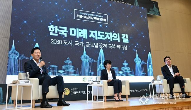 [대한민국교육신문] 오세훈 서울시장이 23일 오전 10시 부산동서대학교에서 열린 ‘2024 한국정치학회 국제학술대회’ 특별대담 모두발언에서 ▴지방의 강소국화 ▴정치 개혁 ▴한국의 외교안보와 통일비전을 담은 ‘지방거점 대한민국 개조론’ 에 대한 구상을 밝혔다.