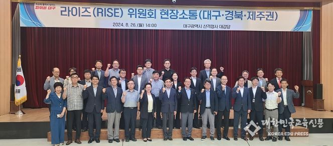 [대한민국교육신문] 8월 26일 오후 대구시청 산격청사 대강당에서 2025년 '지역혁신중심 대학지원체계(RISE, 라이즈)'의 전국 도입을 앞두고 라이즈위원회와 지자체, 대학, 지역RISE센터 관계자들이 현장 중심의 정책 추진을 위한 소통의 시간을 가졌다.