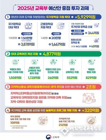 2025년은 주요 교육개혁 과제들이 본격적으로 추진되는 해로 교육개혁을 성공적으로 뒷받침할 수 있도록 예산안을 편성했다.