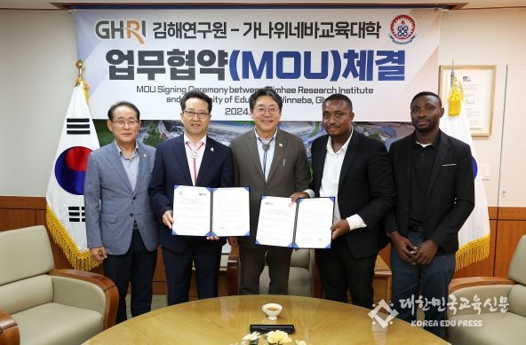 [대한민국교육신문] (재)김해연구원은 지난 30일 가나의 위네바교육대학교와 연구 및 인적 교류 활성화를 위한 업무협약(MOU)을 체결했다.