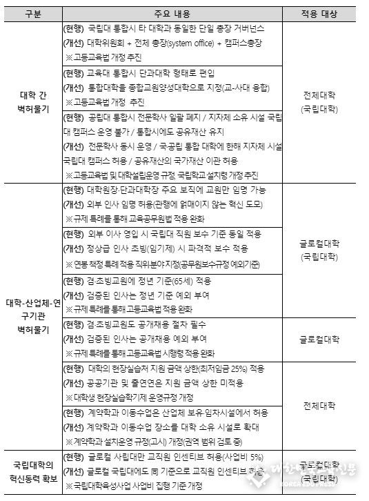 둘째, 글로컬대학의 혁신을 지원하기 위해 대학의 요청에 기반하여 규제 개혁과 제도 개선을 추진한다.