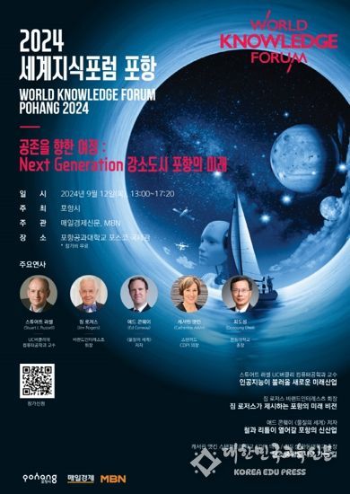 [대한민국교육신문] 포항시는 오는 12일 포스코 국제관에서 세계 최고의 석학들을 초청해 지속가능한 미래 산업도시의 청사진을 그리는 ‘2024 세계지식포럼 포항’을 개최한다.