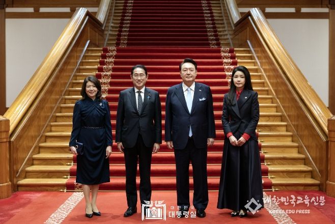 [대한민국교육신문] 윤석열 대통령 부부는 9월 6일 한국을 방문 중인 기시다 후미오 일본 총리 부부와 일본 대표단을 초청해 청와대 본관에서 2시간 가량 만찬을 가졌다.